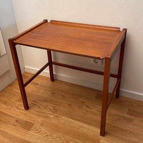 Ett bord i teak. Perfekt som sidobord eller sängbord.