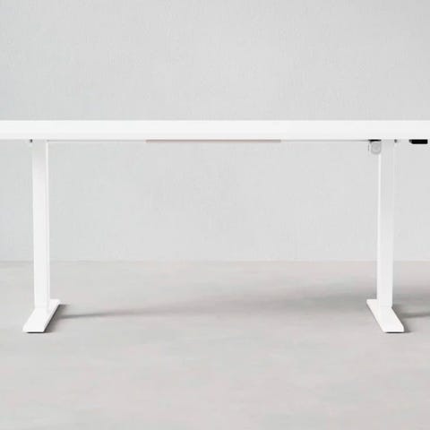 Skrivbord i mycket bra skick från Edsbyn, gråvit nyans, rejäl skiva för stabilt kontors- eller hemmaarbete.