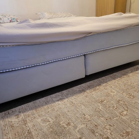 Sturdy mattress, so it is perfect even if you have back pain. It has a Velvet like texture. No stains and no damage. As good as new.