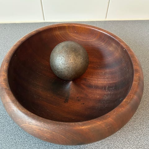 Detta är en smörkärna av glas och metall, troligen från 1900-talets första hälft. Smörkärnan är en anordning som används för att omvandla grädde till smör genom kärning.