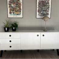 Har använts som tv-bänk men funkar även som sidobord i en hall el. Dylikt.