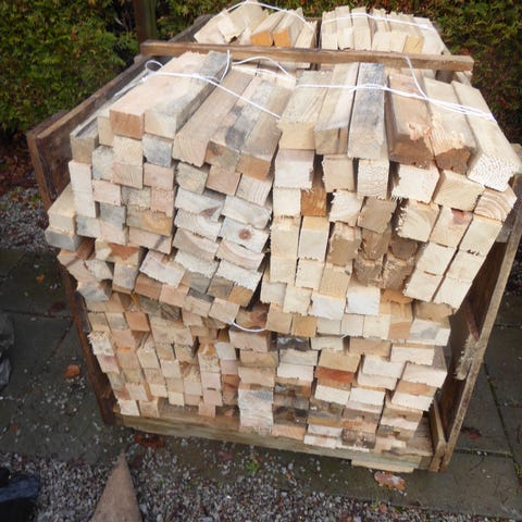 Metallburar fyllda med spill virke/ pallvirke färg och spik förekommer pris 300:- för en bur 200:- i pant för burarna.