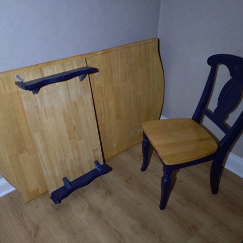 Matbord med Egengjord iläggsskiva som går att ta bort skänkes Bärhjälp behövs
