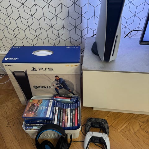 Säljer nu mitt Playstation 5 med original lådan och med 9 väldigt bra spel, Som ni kan se är det 3 playstation 4 spel och 5 playstation 5 spel