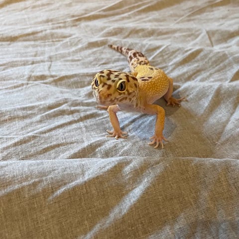 Afrikansk tjock svans gecko med terrarium, värmelampa och box med mjölmask. Van att hanteras och passar för barn.