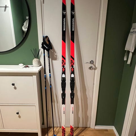 Rossignol RSkin Delta Sport längdskidor 189 cm med Rottefella bindning. På undersidan finns R-Skin fästyta för bättre grepp vid skidåkning. Nyskick, använda en gång. Inköpta 2025. Inställda vid köp för 165 cm, 65-70 kg. Finns stavar och pjäxor stl 38 om det önskas. Pris för endast skidor med bindning.