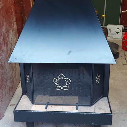 Insats för öppen spis. Bredd 55cm, djup 35 cm. Gnistskydd medföljer.