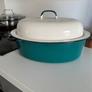 Oval gjutjärnsgryta med lock, 5 liter