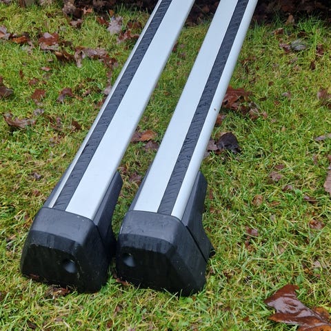 Inköpt december 2022, aldrig använd. Högglansig box med takräcke Thule Wingbar Edge.