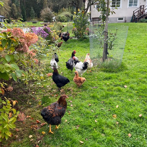 Bielefelder hönor kläckta sommaren 2025, har ännu inte börjat värpa men kommer igång snart.