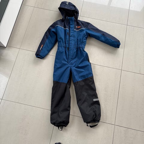 Overall använd av barn, i fint skick utan skador. Passar tyvärr inte vintern, då den saknar foder, men funkar perfekt för vårens regndagar! 😊 Extra band för att fästa vid kängor ingår. Rök- och djur-fritt hem.
