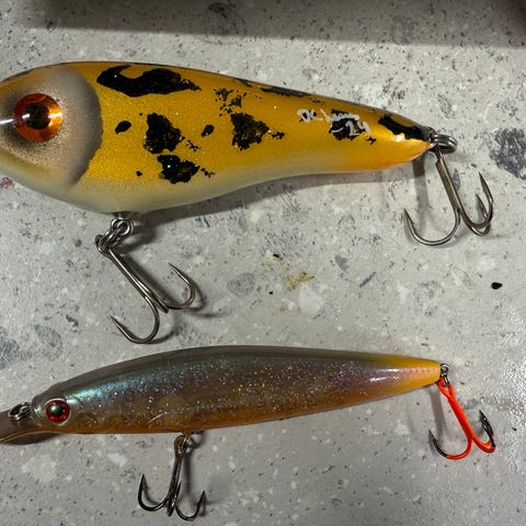 Jerkbait och Laser jerk ( swimbait) några är helt nya , några är fiskade max 1-2 timmar
