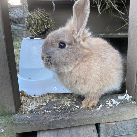Mycket tam kaninhane född augusti 25, ej genbank. Uppfödd med barn, kommer skuttande när man öppnar dörren.