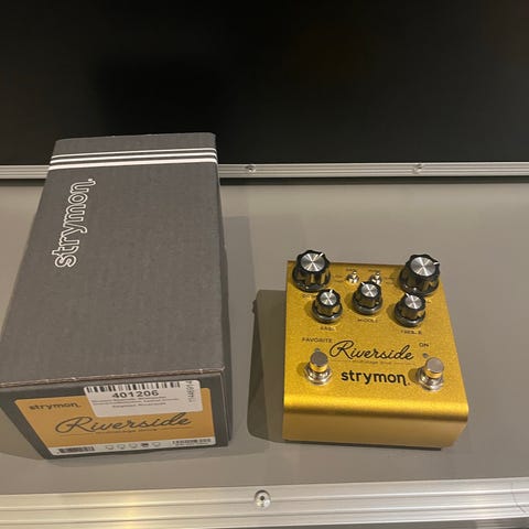 Strymon Flint gitarrpedal med flera reglage för att justera ljudinställningar. Pedalen har anslutningar för ingång och utgång samt strömadapterkontakt. Levereras med originalförpackning och tillbehör.