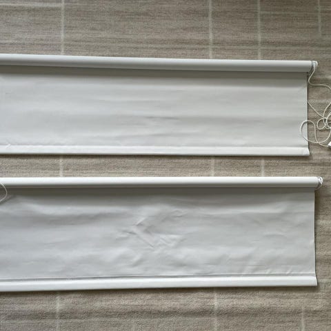 Två stycken svarta rullgardiner. Vävbredd 175 cm, vävlängd 190 cm.