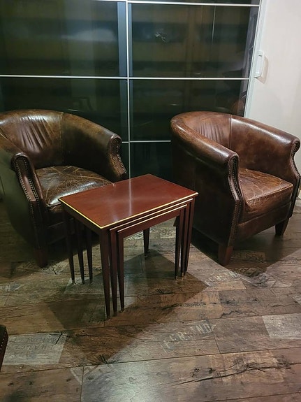 Chesterfield öronlappsfåtölj I äkta läder +elegant soffbord