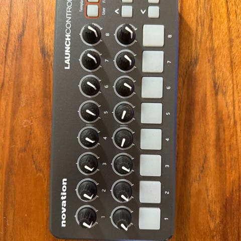 Novation Launchpad Mini MIDI-kontroller med ett kompakt rutnätsgränssnitt för musikproduktion och liveframträdanden. Designad för att användas med Ableton Live och andra musikprogram via USB-anslutning.