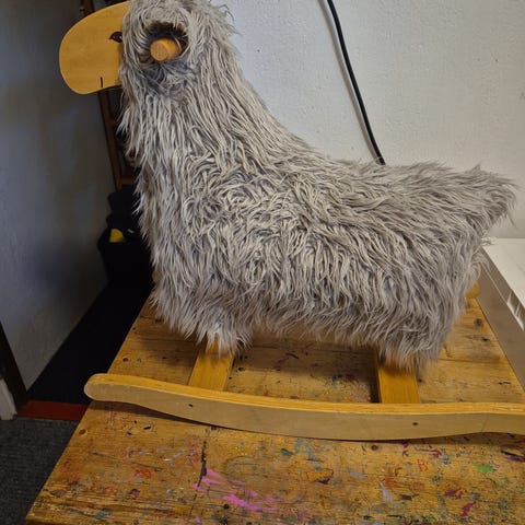 Söt gunghäst till form av en mammuten Neo. Lurvet är lite tillplattat upptill, annars i bra skick!