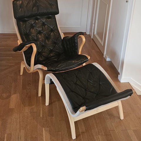 Svart skinnklädsel som passar för Pernilla. Klädseln är uppsydd hos en dansk tapetserare och passar perfekt.