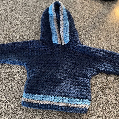 Cosilana Babyjacka med huva av mjuk ullfleece, 60 % ny ull, 40 % bomull. Storlek 74/80. Väldigt bra skick nästan som ny. Ny pris är 700.