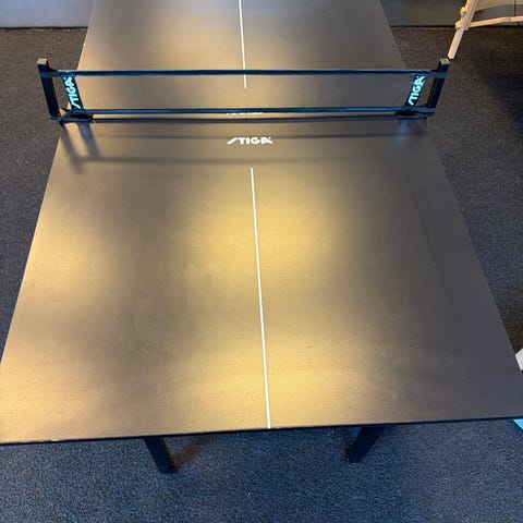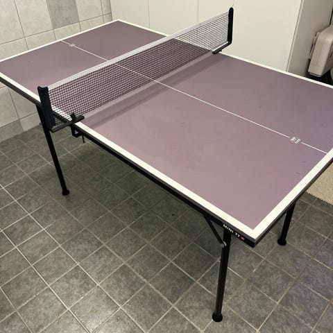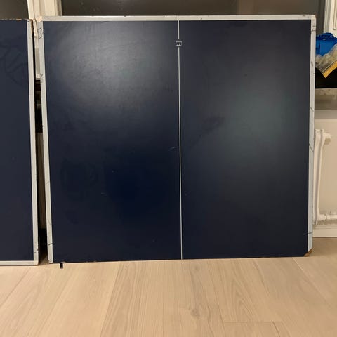 bordtennisbord i blå färg. Bordet är av standardstorlek för bordtennis och är lämpligt för inomhusbruk.
