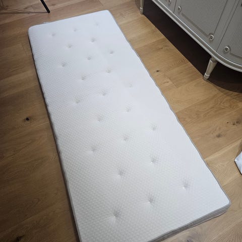 Ikeas Tussöy skummadrass, ljuvlig och formar sig efter dig. Bredd 80 cm