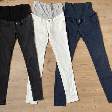 Gravid-jeans i hängselbyx-modell. Mycket sparsamt använda. Midjemått justeras med knappar på sidorna. Storlek 36, märke JoJo Mamam Bebe.