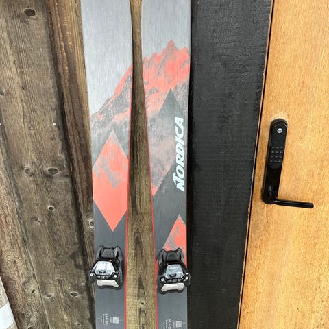 Lite slitage på över sidan men det påverkar inte skidan sig själv. En mycket fin och bra skick marker griffon 14 bindning. Bindingen passar allt från 26.5 till 28.5.