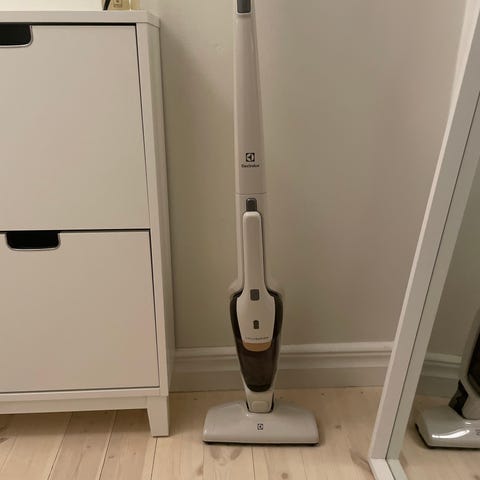 Modellen kombinerar en stående dammsugare och en avtagbar handdammsugare för flexibel rengöring. Laddstation ingår.