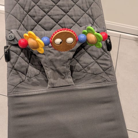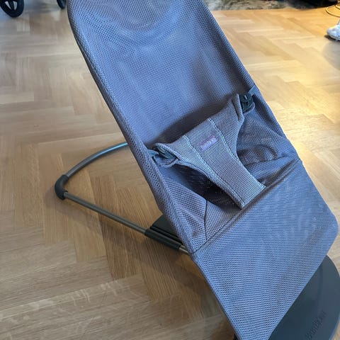 Babybjörn barnstol sandfärgad inköpt 2025 med vadderad och quiltad sits. Barnstolen har en stabil ram i metall och är utformad för att ge komfort och stöd för barn. Passar för små barn och kan användas för vila eller lek.