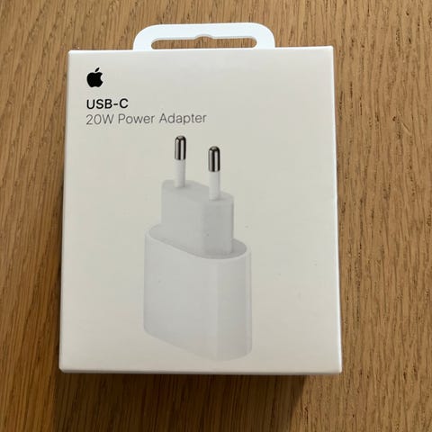 Helt ny - Apple USB Power Adapter för laddning av kompatibla enheter via USB. Produkten är vit och avsedd för användning med USB-kablar.