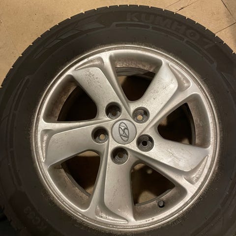 Fina sommardäck säljes med aluminiumfälgar.
