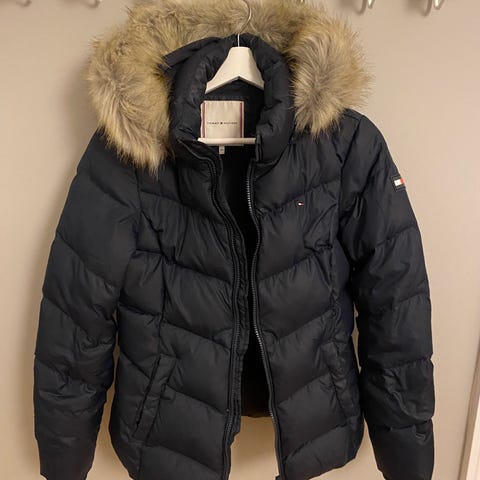 Svart lång dunjacka av märket Tommy Hilfiger, storlek 152. Fint skick. 200 kr.