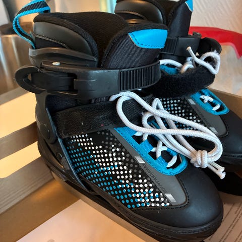 Jofa ishockeyskridskor för barn i storlek 32 (21,2 cm). Skates är avsedda för ishockey och har svart färg med vita snören och vit sula. Relativt nyslipade.