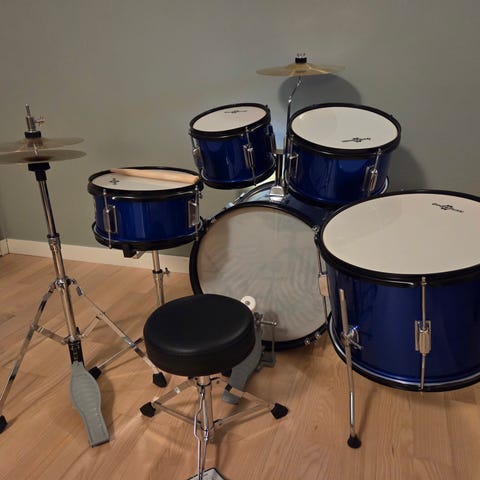 Hi-hatcymbalerna är i behov av byte. Annars fungerande och bra för att testa på eller ha ett billigt trumset man inte behöver vara rädd om!