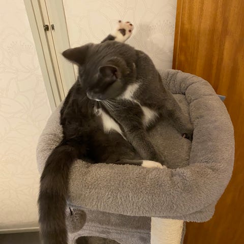 Väldigt social och fin katt som gillar att umgås, bli klappad och spinner så fort vi kommer nära. Hona som är född 1 oktober. Avmaskad och färdig för flytt till ett nytt hem. Bondkatt.
