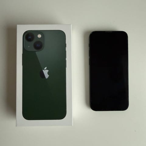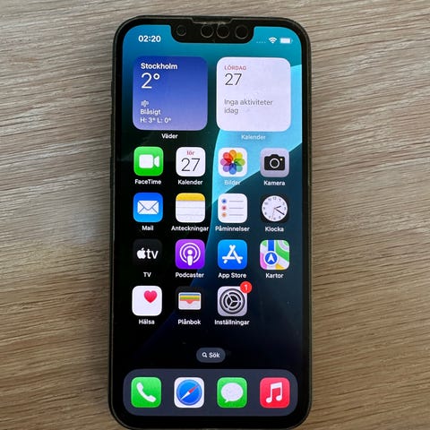 Apple iPhone 13 Mini mobiltelefon med 128 GB lagringsutrymme i blå färg. En kompakt modell med avancerade funktioner och bra prestanda, lämplig för användare som söker en mindre smartphone med tillräckligt med minne för appar och media.