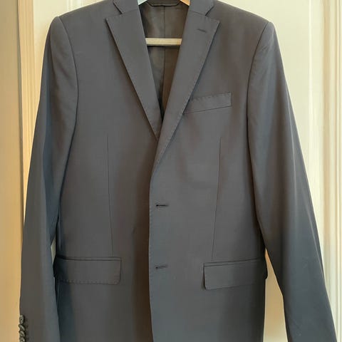 Säljer min kostym som jag använt tre gånger. Bra skick! Byxor storlek 46 och kavaj storlek 48.