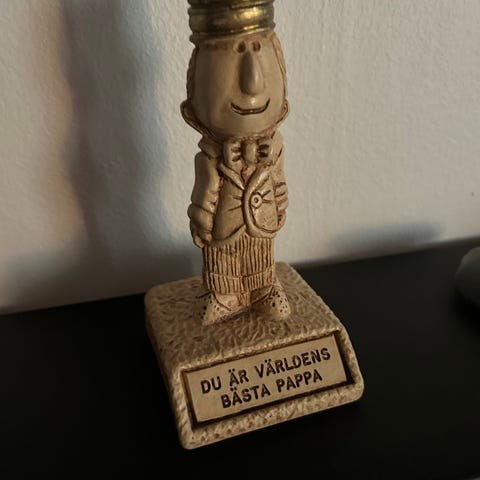 Dekorativ ansiktsstaty i guldmetall monterad på svart stativ. Passar som inredningsdetalj i olika rum för att tillföra en konstnärlig touch.