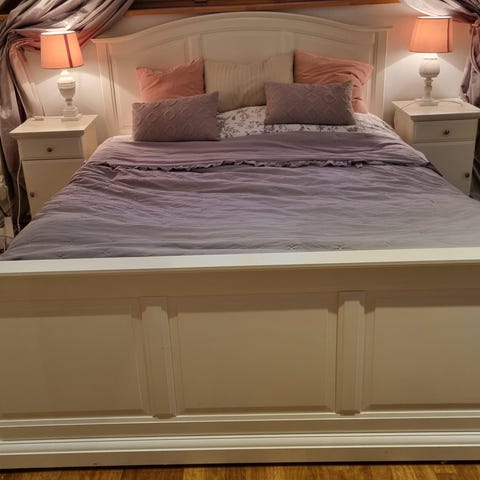 En sängram 160cm (ej madrass) samt 2 sängbord.