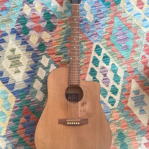 Tanglewood akustisk med fishman sonitone pickup. Otrolig fin och snygg gitarr 5000:- plus ny. Skickar med snygg gigbag.