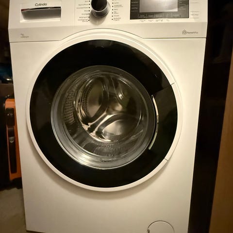Candy Frontmatad tvättmaskin. Vit färg med rund lucka framtill för laddning av tvätt. Maskinen är avsedd för tvätt av kläder och textilier.