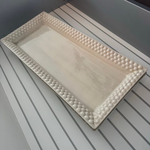 Oanvänd serveringsfat i keramik. Bredd 23cm, längd 41cm