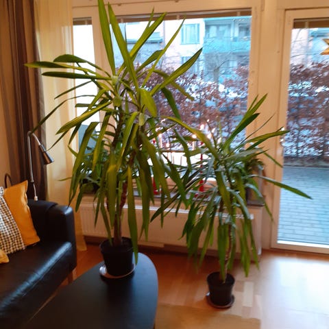 Konstgjorda palmväxter 180 cm höga, krukans mått är 23 cm i diameter. Växten är avsedd för inomhusbruk och används som dekorativt inslag i hem eller kontor. Nypris 700 kr styck.