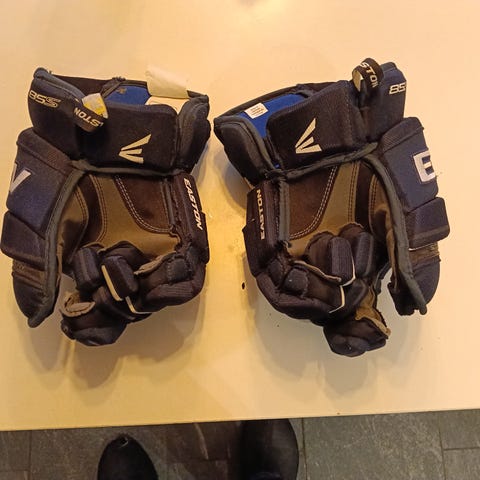 Easton ishockeyhandskar med längden 23 cm. Handskarna är utformade för ishockey och har svart och vit färg.