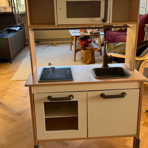 Omgjort Ikea kök för något år sedan, men fortfarande i fint skick. Lite skav finns men inte så mycket. Spisen fungerar.