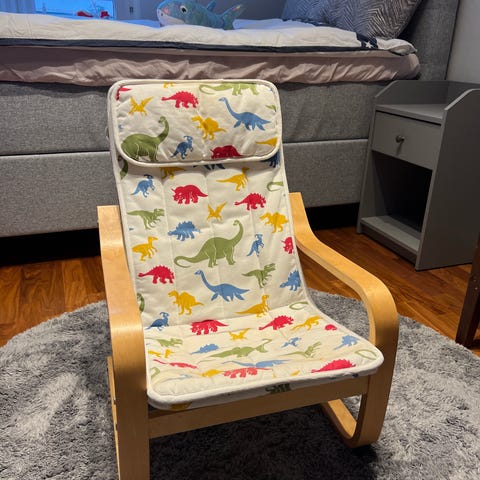 IKEA Antilop barnstol med röd och mönstrad sits