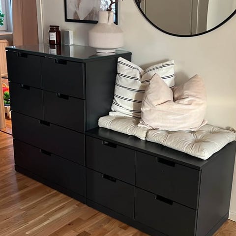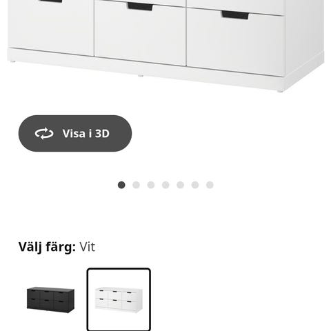 IKEA NORDLI i vitt med måtten 160 cm i bredd, 145 cm i höjd och 47 cm i djup. Byrån har flera lådor för förvaring och är tillverkad i trämaterial. Produkten är lämplig för förvaring i olika rum.
