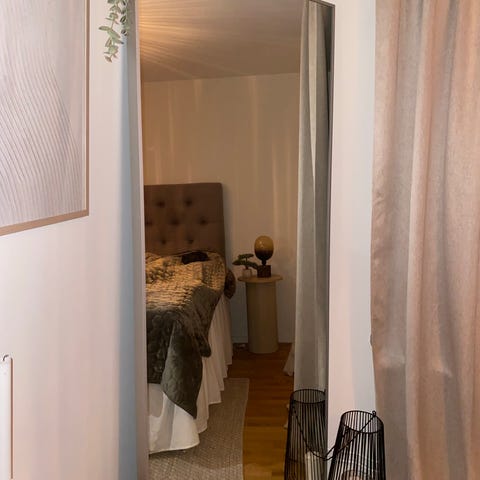 Helkroppsspegel med ram i aluminium, IKEA ”Hovet”. Monteringsbeslag medföljer.