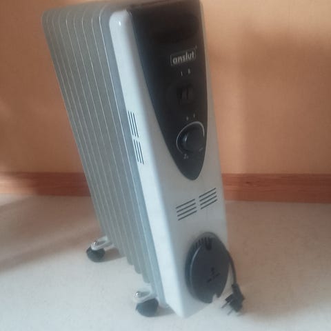 vå oljefyllda element av märket Domestic. Modellnummer DT-2000TF. 230-240V~ 50Hz 2000W. Med timer och turbo.